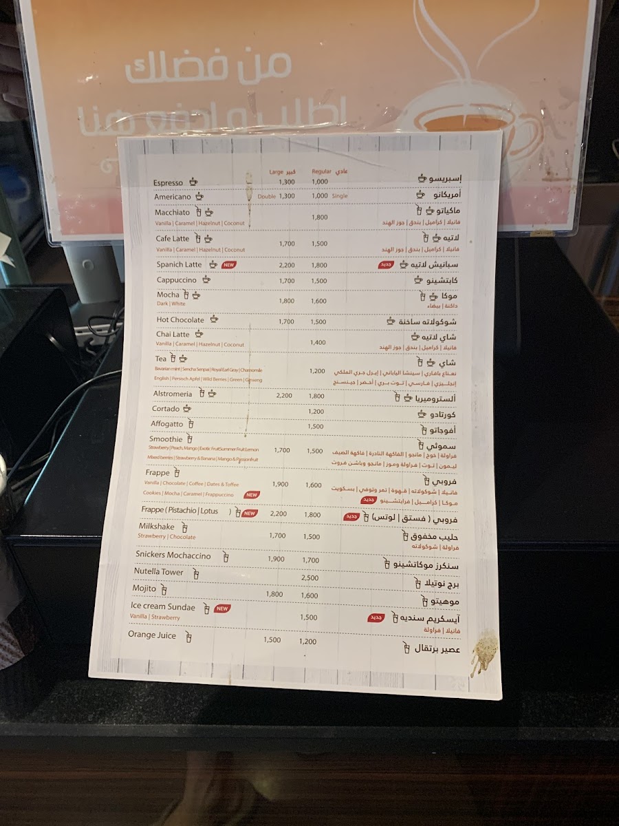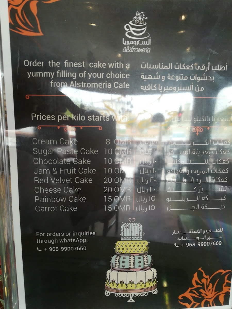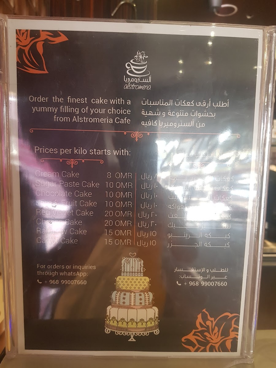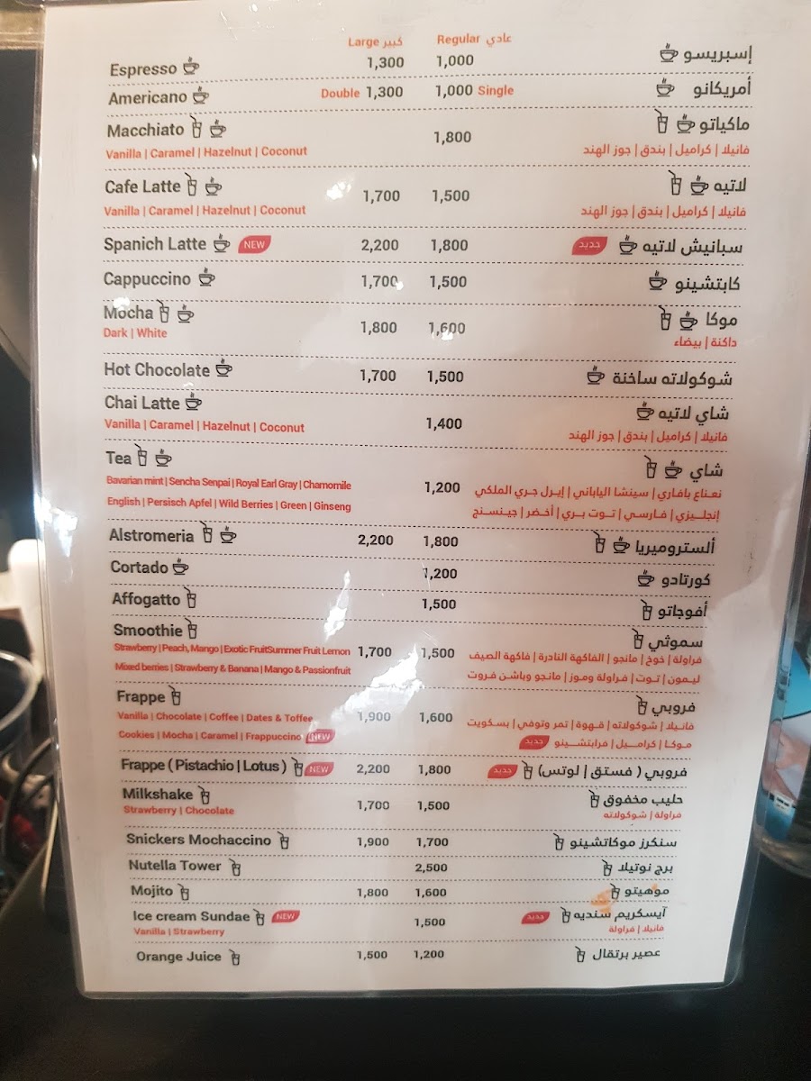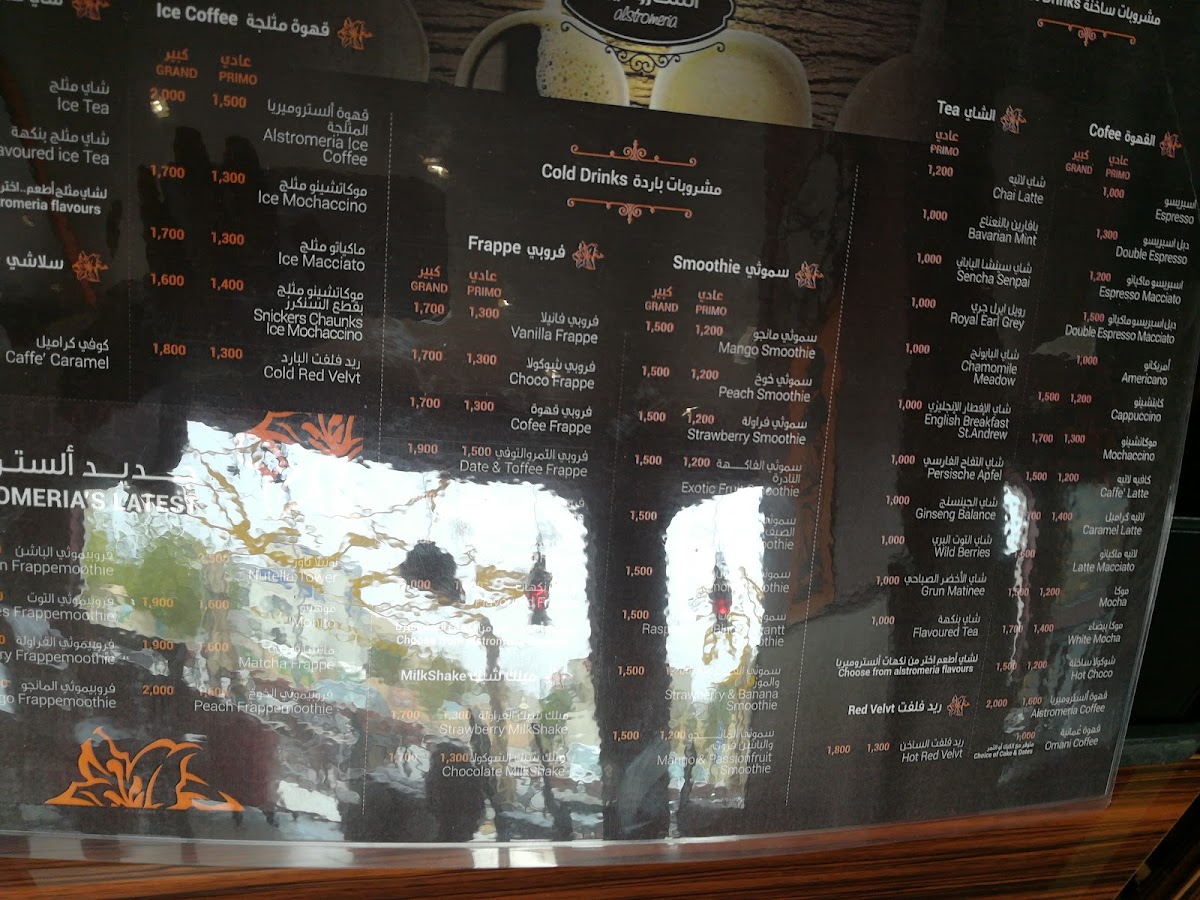 The menu at Alstro Cafe, located at 473G+C55, Al Hamra, Oman, offers a delightful array of beverages and desserts that cater to various tastes. One of the standout drinks is the قهوة سوداء, a rich, bold black coffee that is perfect for those who appreciate a strong caffeine kick. Another must-try is the Americano, known for its smooth flavor and simplicity, ideal for coffee purists. For those looking for a creamy, comforting drink, the Coffee Latte and كافي لاتيه are excellent choices, providing a silky texture with a perfect balance of espresso and steamed milk.